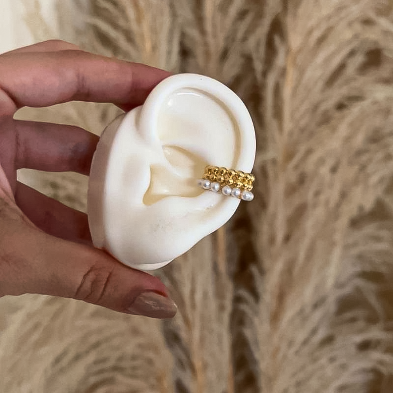 A fusion of elegance and modern design, Napoles is a triple-layer ear cuff adorned with delicate pearls. Crafted from rhodium-plated stainless steel, this piece adds a refined yet contemporary touch to your look.